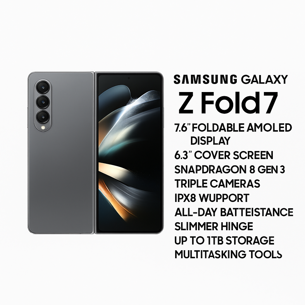 The Samsung Galaxy Z Fold 7 is the thinnest and lightest Fold yet, with unmatched multitasking on its 8″ main screen, a 200 MP flagship-grade camera, and cutting-edge AI-powered software. It delivers flagship-tier performance in a refined foldable package—though battery and charging remain modest improvements.